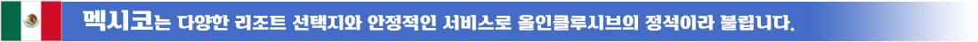 리조트 특징: 전통 멕시코 감성의 리조트, 가족 친화적 시설 많음